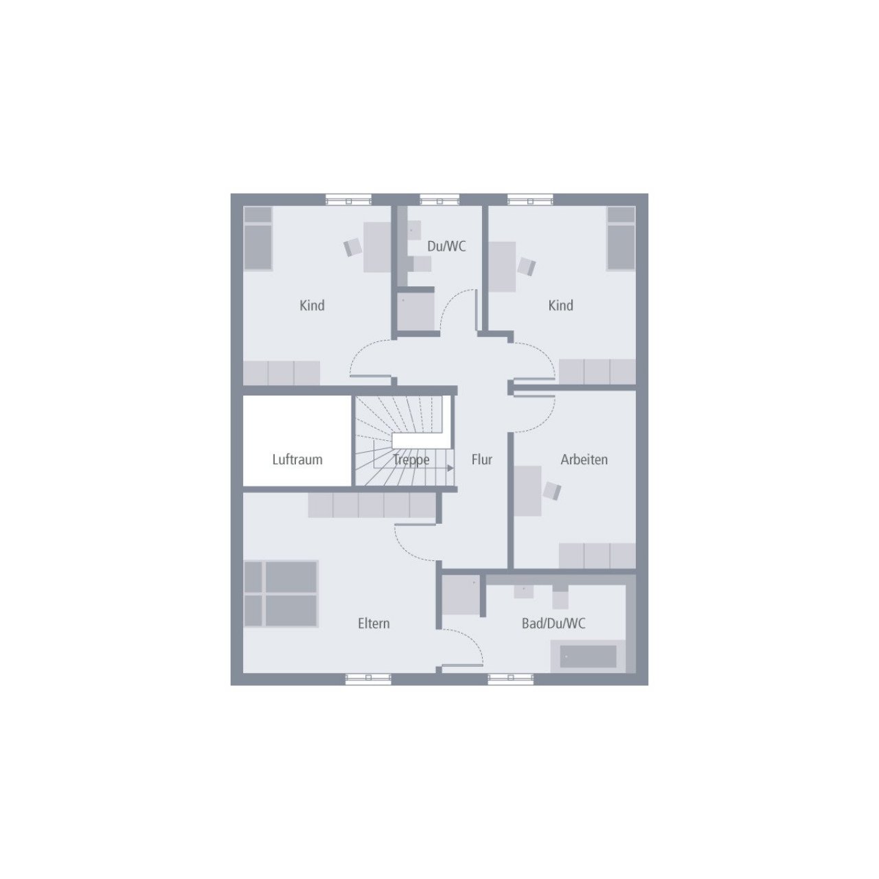 Als echtes Raumwunder entpuppt sich das Design 18.2. In die rund 100 m² Fläche im Erdgeschoss ist ein Carport integriert, wodurch die künftigen Bewohner bei Wind und Wetter trockenen Fußes ins Hausinnere gelangen. Besonders praktisch: Vom Carport führt eine Tür in den Hauswirtschaftsraum, wo die Einkäufe direkt und ohne großes Schleppen verstaut werden können. Auch die Haustür liegt im Bereich des Carports. Von hier gelangt man über die großzügige Diele, vorbei am Gäste-WC, direkt zum Highlight des Hauses: in den knapp 48 m² großen Wohn-Ess-Bereich, der nicht nur großzügig bemessen ist, sondern auch mit seiner Helligkeit punktet. Viel Platz für Arbeit, Hobby und Entspannung bietet die erste Etage. Dort finden zwei Kinder Raum zum Schlafen und Spielen. Zudem gibt es zwei große Bäder: Eines wird von den beiden Kinderzimmern eingerahmt, ein weiteres schließt sich direkt ans Elternschlafzimmer an.