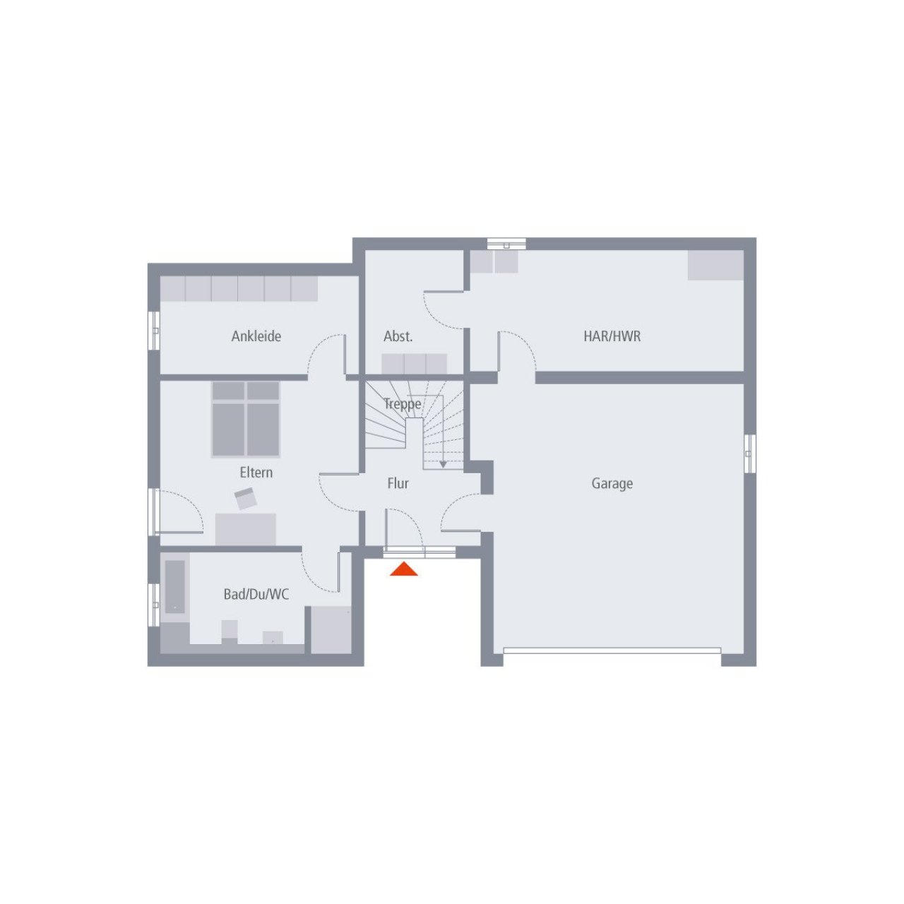 Unser Designhaus im Berg ist für die besonders anspruchsvolle Umgebung konzipiert und fügt sich auf elegante und zugleich durchdachte Weise ideal in hügeliges Gelände ein. Das Einfamilienhaus erstreckt sich über zwei Etagen und ist bereits von außen ein echter Blickfang: Auf der dem Berg abgewandten Seite befindet sich im Untergeschoss eine Garage sowie - unmittelbar darüber - ein überdachter Balkon, der die Fassade nicht nur optisch aufwertet, sondern auch für einen wohnlichen Mehrwert sorgt: Hier können die künftigen Eigenheimbesitzer vor fremden Blicken geschützt entspannen. Doch auch unter dem Satteldach hat das Designhaus auf einer Wohnfläche von rund 222 m² viel zu bieten. Im Kellergeschoss, das zugleich auch attraktiven und klimatisch immer angenehmen Wohnraum bietet, befindet sich das Reich der Eltern. Diese verfügen über ein Schlafzimmer mit Ankleide sowie ein Badezimmer. Auf der gegenüberliegenden Seite des zweigeteilten Kellers befinden sich Garage und Nutzräume. Mittelpunkt des Erdgeschosses ist der mehr als 45 m² große Wohn-Ess-Koch-Bereich mit einer sich unmittelbar anschließenden Speisekammer und direktem Zugang zum Balkon, zwei Kinderzimmern und einem Duschbad.